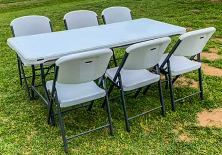Make your event more comfortable and organized with the 6-Foot Table and 6 Chairs rental package from 918 Bounce Kingdom.